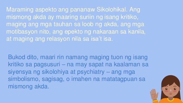 12092011 Ang layunin ng panitikan ay ipaliwanag sa pamamagitan ng pagpapakita ng mga salig factor sa pagbuo ng naturang behavior pag-uugali paniniwala pananaw pagkatao sa isang tauhan sa kanyang akda. Isang alternatibong perspektibo kung paano ipapaliwanagnag pag-iisip pagkilos at damdaming Pilipino na malakiang kaibahan sa mga pananaw ng iba pang anyo ng sikolohiya sa Pilipinas. Bawat desisyon at pangarap ay dapat na sinasala sa pamamagitan ng Kanyang mga Salita na ang layunin ay luwalhatiin ang Diyos sa lahat ng bagay 1 Corinto 1031.