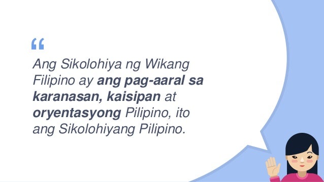 Ang Sikolohiyang Pilipino ay sikolohiyang bunga ng karanasan kaisipan at oryentasyong Pilipino.