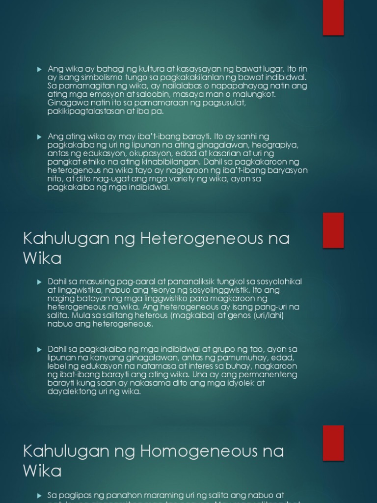 FILI REPORT- HOMOGENEOUS AT HETEROGENEOUS NA WIKAdocx. Ito ay ang mga uri ng wikang karaniwang ginagamit sa pakikipag. Ang isyung ito ay kailangan nating bigyang pansin sapagkat ito ay ukol sa pagkalimot ng mga Pilipino sa kanilang wika at pati na rin sa gawa ng ating kapwa Pilipino.