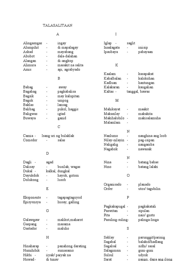 Talasalitaan Malalim Na Salita