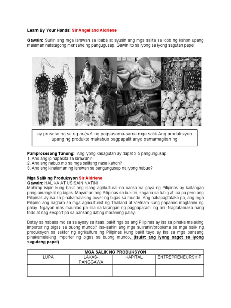 Ano Ang Mga Salik Ng Produksyon Aralipunan
